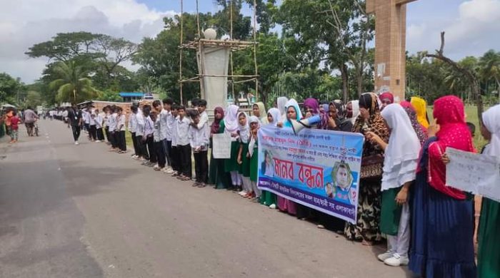 খুলনা রূপসা নবম শ্রেণীর ছাত্রী চৈতীর আত্মহত্যার জন্য শিক্ষকে দায়ীকরে মানববন্ধন অনুষ্ঠিত