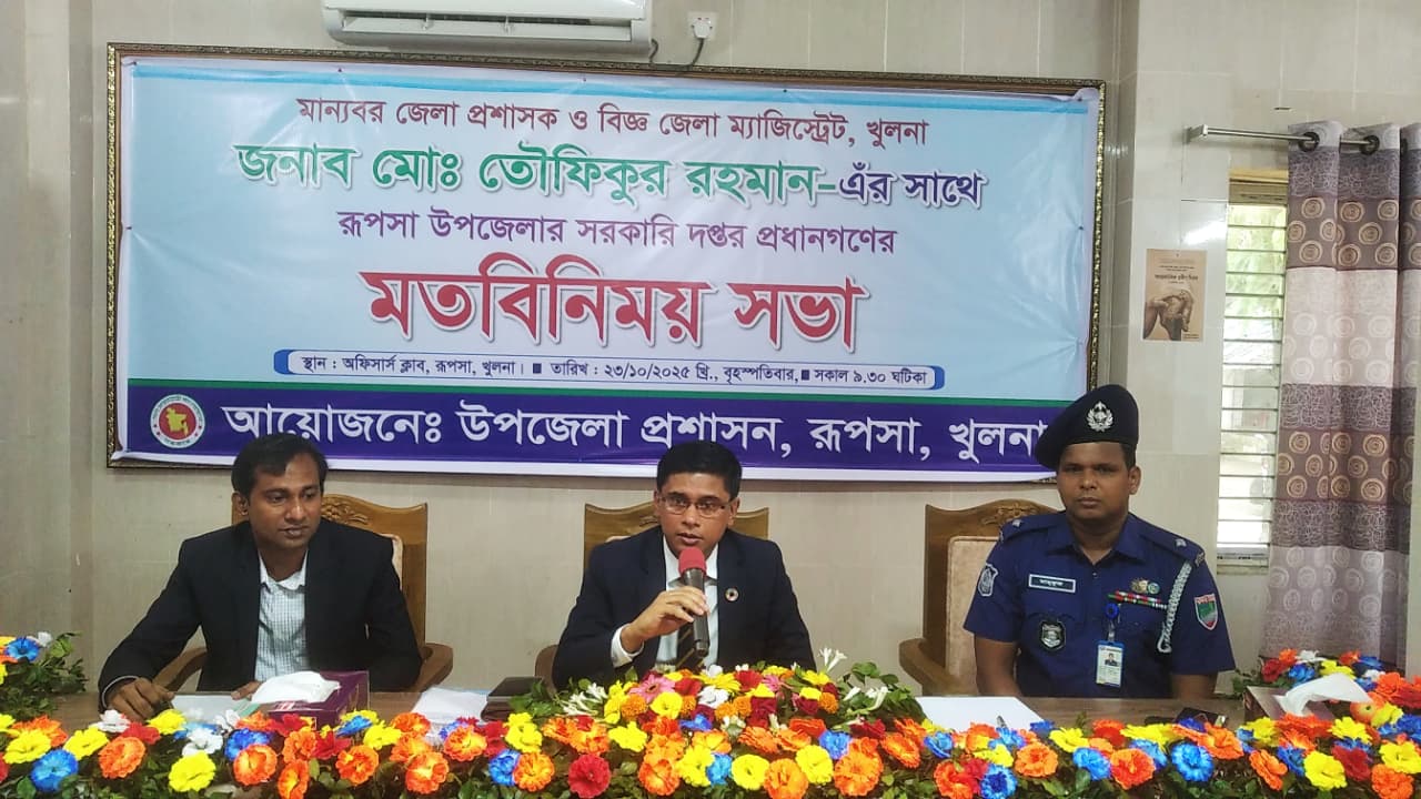তিনি আজ ২৩ অক্টোবর সকালে রূপসা উপজেলা প্রশাসন আয়োজিত উপজেলা অফিসার্স ক্লাবে উপজেলার সরকারি দপ্তরের প্রধানগণের সাথে মতবিনিময় সভায় প্রধান অতিথির বক্তব্যে একথা বলেন।