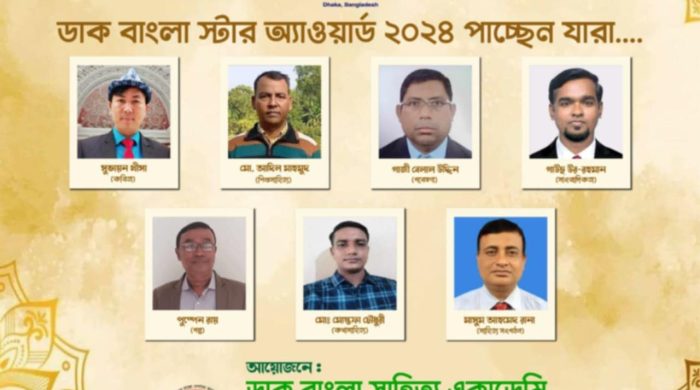ডাক বাংলা সাহিত্য একাডেমি কর্তৃক আয়োজিত ‘ডাক বাংলা স্টার অ্যাওয়ার্ড ২০২৪’ প্রদানের জন্য কবিতা, শিশুসাহিত্য, গবেষণা, সাংবাদিকতা, গল্প, কথাসাহিত্য এবং সাহিত্য সংগঠনে বিশেষ অবদানের স্বীকৃতি স্বরূপ ৭ জন পাচ্ছেন ‘ডাক বাংলা স্টার অ্যাওয়ার্ড ২০২৪’। গত ২৭ অক্টোবর ২০২৪ খ্রি. রোজ রবিবার বিকাল ৪ ঘটিকায় একাডেমি’র কেন্দ্রীয় কার্যালয়ে অনুষ্ঠিত ‘ডাক বাংলা স্টার অ্যাওয়ার্ড ২০২৪’ কমিটি মনোনীত জুরি বোর্ডের সভায় এই সিদ্ধান্ত নেওয়া হয়েছে। অ্যাওয়ার্ড প্রদানের স্থান, তারিখ ও সময়সূচি পরবর্তী সময়ে জানিয়ে দেওয়া হবে।