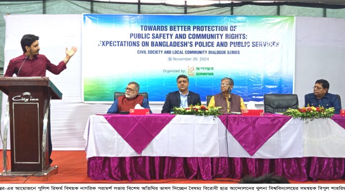 বর্তমান অন্তর্বর্তীকালীন সরকারের রাষ্ট্র সংস্কার কর্মসূচীর উদ্যোগের মধ্যে অন্যতম, বাংলাদেশ পুলিশ বাহিনী সংস্কার। এই কাজে সহযোগিতা করতে সুন্দরবন অঞ্চলের বিভিন্ন পেশা ও সম্প্রদায়ের নাগরিকদের অভিমত ও সুপারিশ সংগ্রহ এবং লিপিবদ্ধ করতে এই পরামর্শ সভার আয়োজন করা হয়। আজ ২৬ নভেম্বর মঙ্গলবার সকালে বেসরকারি উন্নয়ন সংস্থা রূপান্তর-এর আয়োজনে নগরীর শিববাড়ী মোড়স্থ হোটেল সিটি ইন-এ অনুষ্ঠিত হয়।