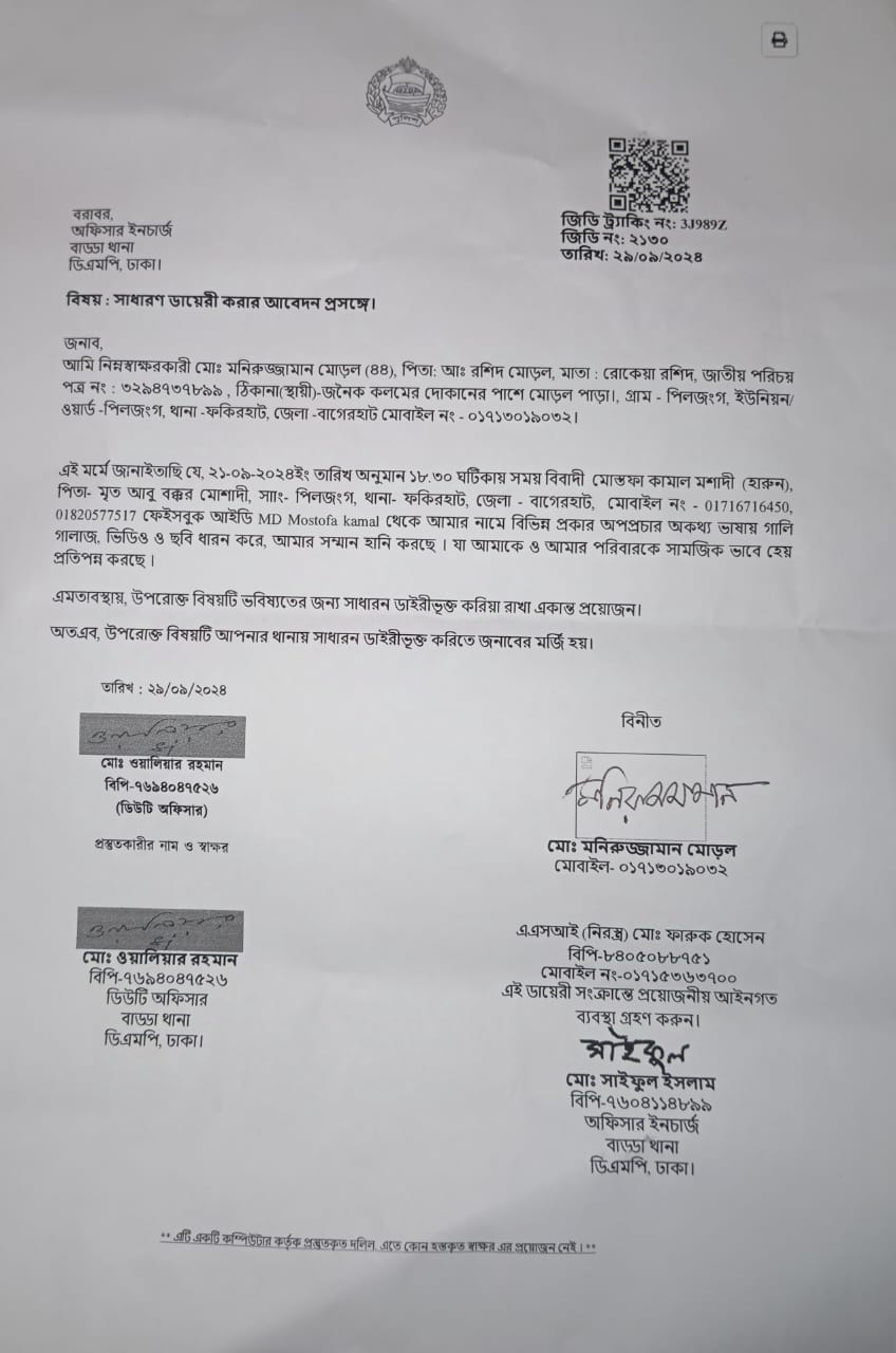 সামাজিক যোগাযোগ মাধ্যমে বিভিন্ন অপপ্রচার ও ভিডিও প্রচার করার ঘটনায় থানায় জিডি