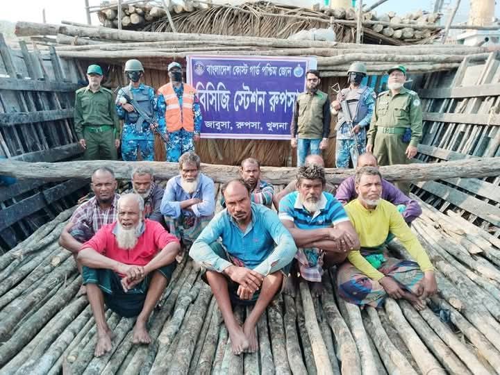 কোস্টগার্ডের হাতে সুন্দরবনের চোরাইকৃত গেওয়া ও গরান কাঠসহ ১০ জন রূপসায় আটক