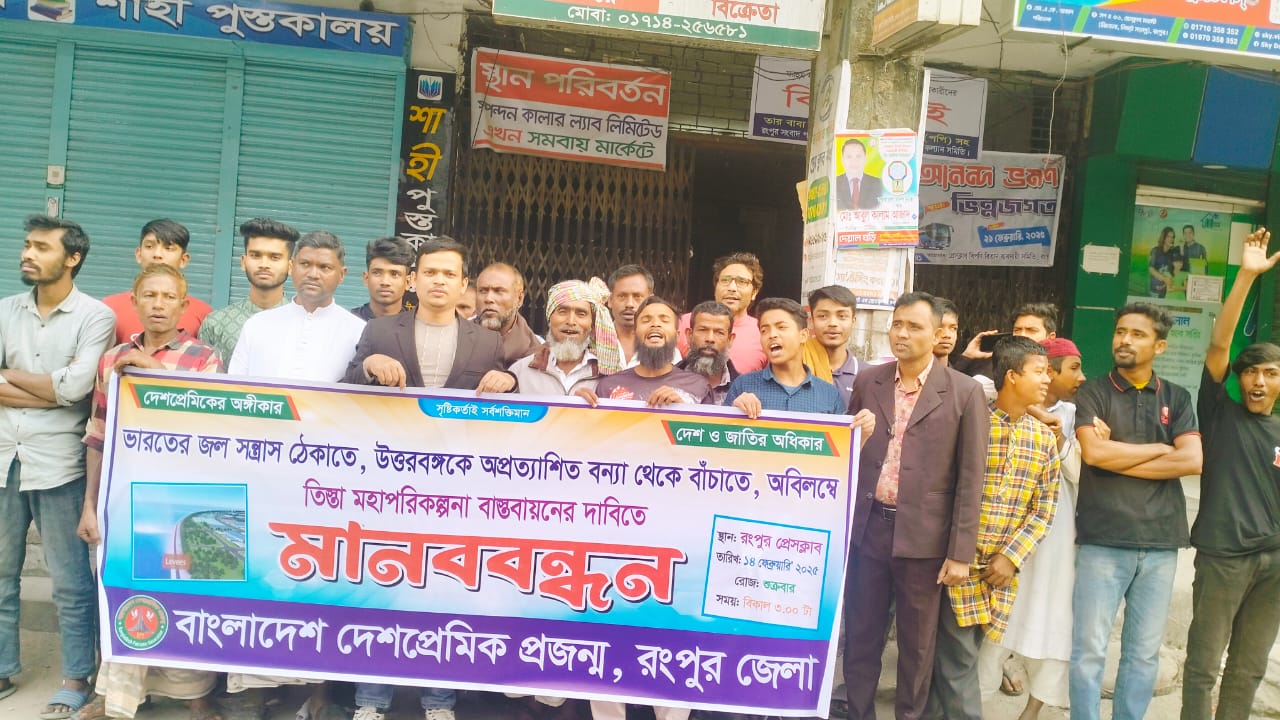বাংলাদেশ দেশপ্রেমিক প্রজন্মের ভারতের জল সন্ত্রাস বন্ধ  ও উত্তরবঙ্গকে অপ্রত্যাশিত বন্যা থেকে বাঁচাতে , তিস্তা মহাপরিকল্পনা বাস্তবায়নের দাবিতে মানববন্ধন