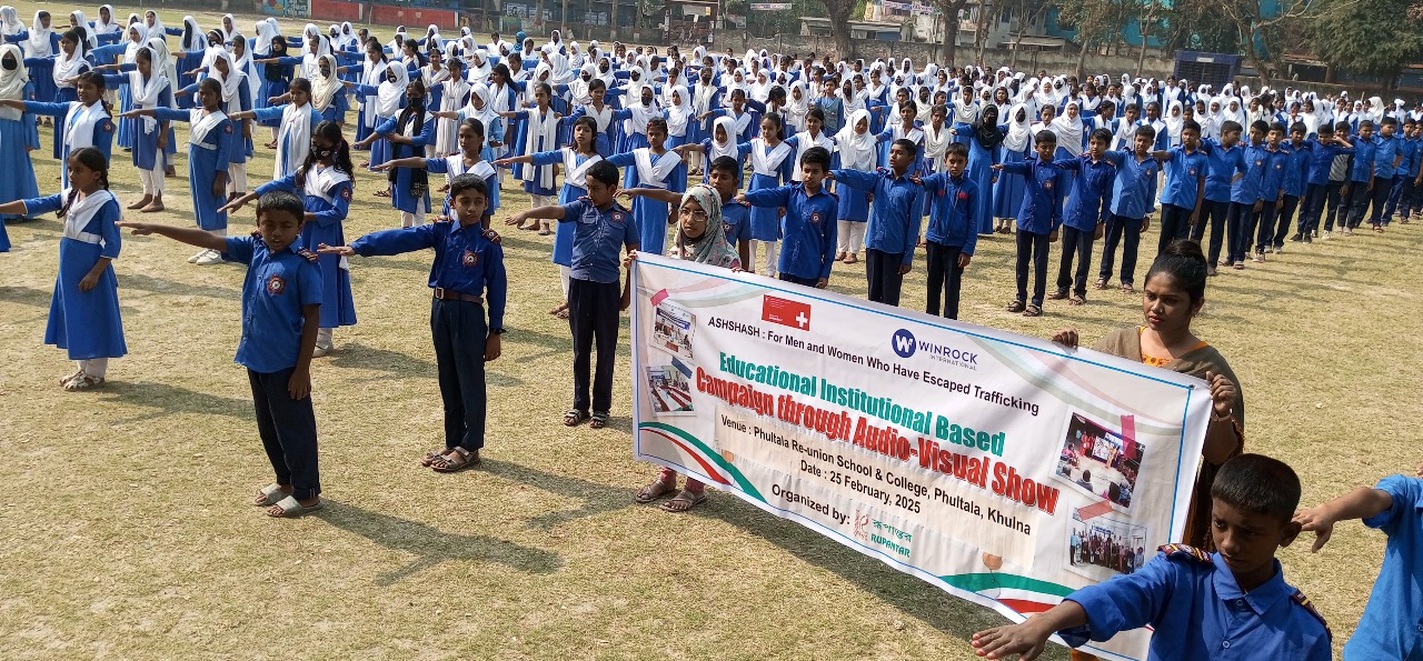 মানব পাচার প্রতিরোধ প্রচারাভিযান কার্যক্রমে ফুলতলা রি-ইউনিয়ন স্কুল এন্ড কলেজের শিক্ষার্থীদের শপথ গ্রহণ