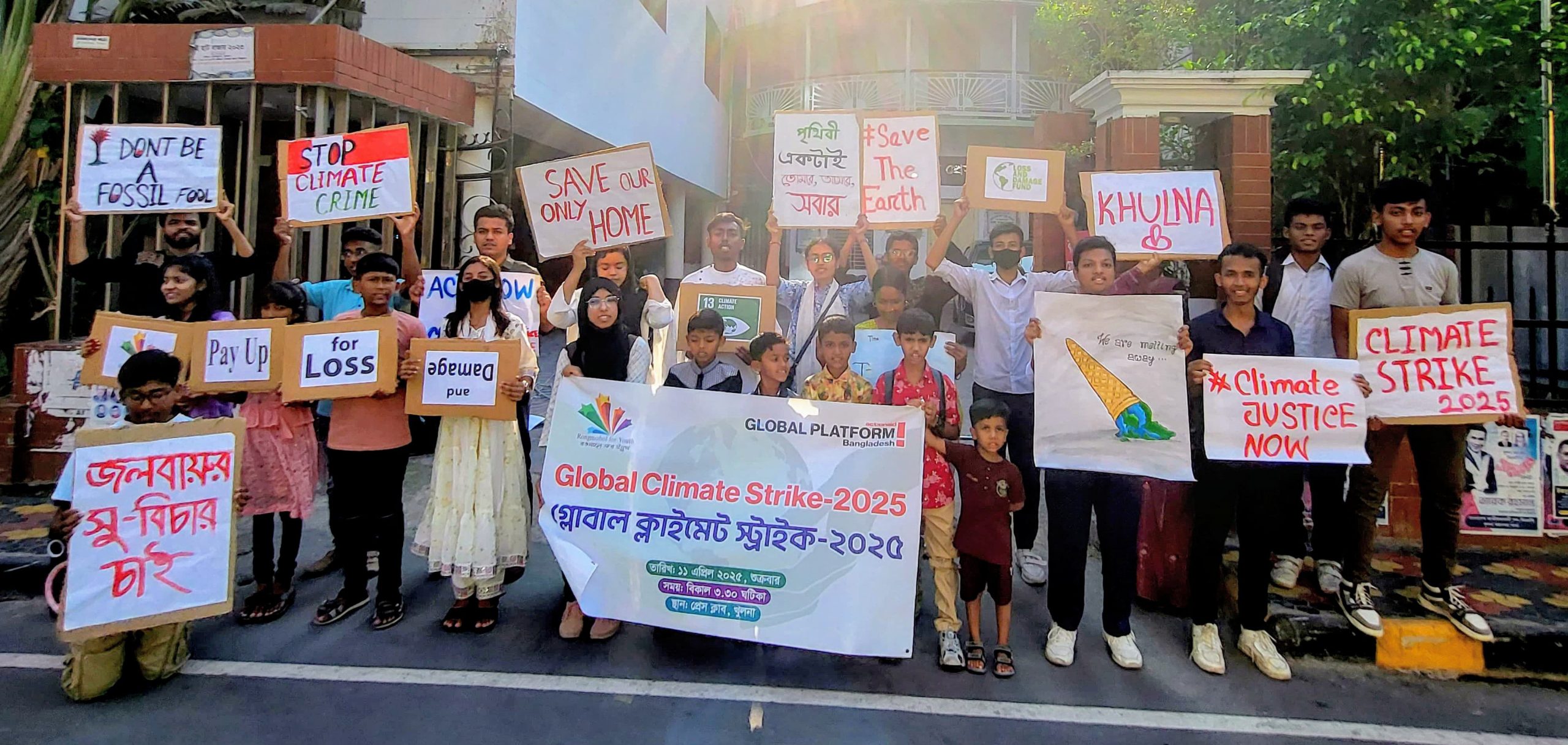 খুলনায় গ্লোবাল ক্লাইমেট স্ট্রাইক ২০২৫ ; উপকূল থেকে উঠলো তরুণদের গর্জন–” ক্ষতির দায়ে ন্যায্য হিসাব চাই”