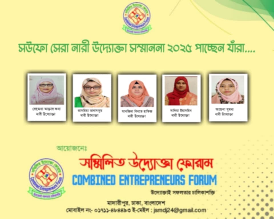সউফো সেরা নারী উদ্যোক্তা সম্মাননা-২০২৫ পাচ্ছেন যারা…….
