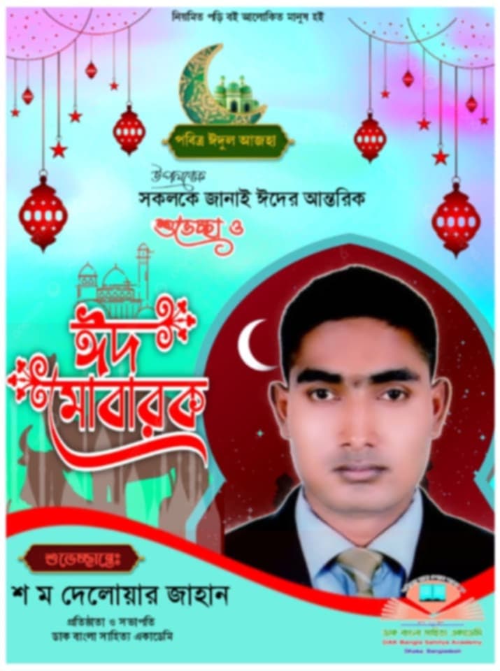 সকল পেশার শ্রেণির মানুষকে পবিত্র ঈদ-উল-আযহার শুভেচ্ছা জানিয়েছেন ডাক বাংলা সাহিত্য একাডেমি ‘র সম্মানিত প্রতিষ্ঠাতা সভাপতি শ ম দেলোয়ার জাহান